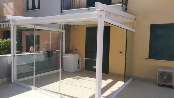 Chiusure laterali con tende trasparenti o vetrate scorrevoli per un comfort totale.